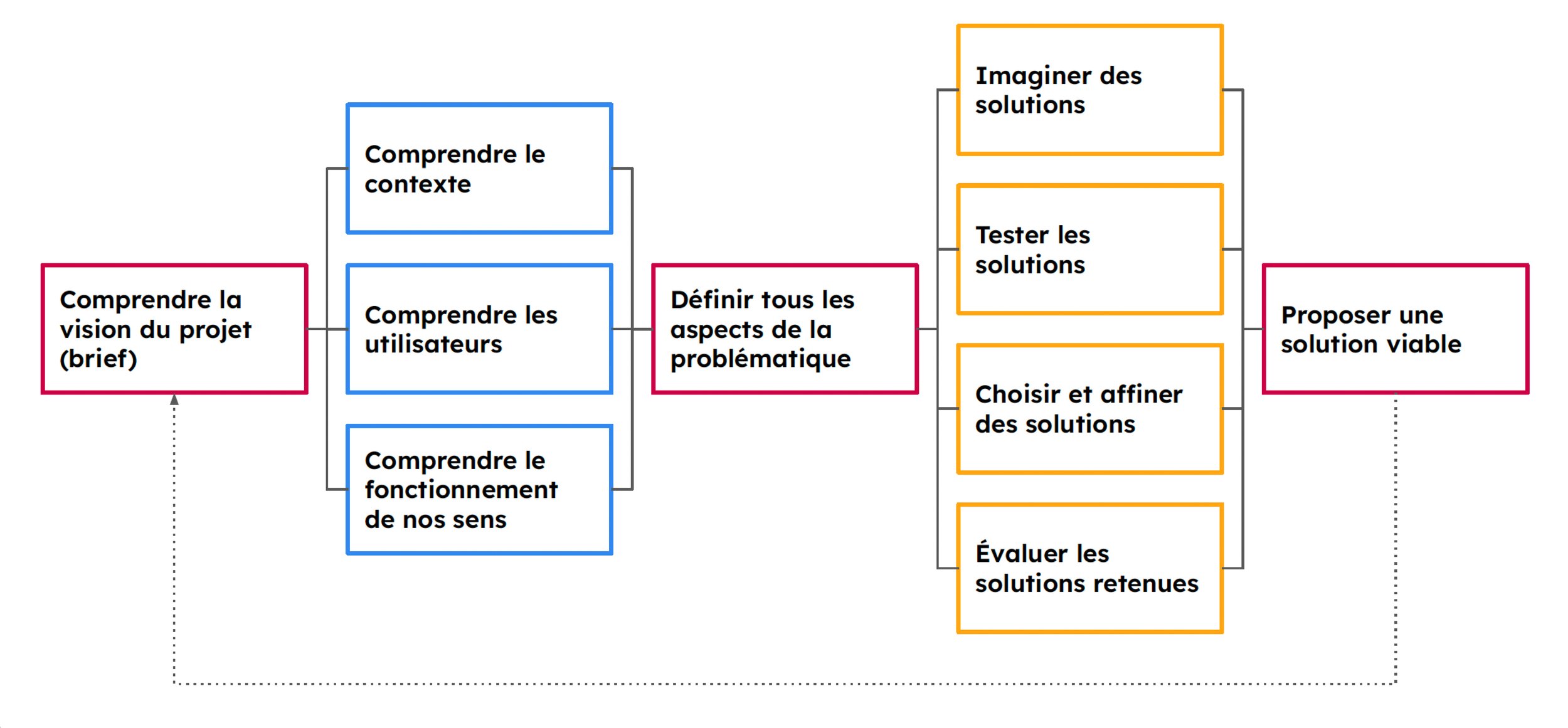• La méthodologie adoptée pour ce projet s’inspire des modèles Double Diamond (découvrir, définir, développer, délivrer) utilisé par l’équipe digitale de QoQa et HCD (empathie, cocréation, itération, contexte).